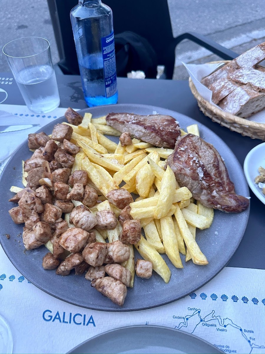 The menu boasts a variety of enticing dishes, expertly crafted to satisfy any palate. Start with the Huevos Rotos Con Jamón—an indulgent dish of fried eggs served over golden, crispy potatoes and savory Serrano ham for just €12.50. Another crowd-pleaser is the Pulpo A Feira, a generous serving of tender Galician octopus, seasoned to perfection with sweet and spicy paprika and a drizzle of high-quality virgin olive oil (€21.50). Don’t miss the way the Ración De Patatas Bravas comes alive with the tangy bite of homemade salsa brava (€8.00), or savor the juicy Croca De Vaca, a succulent beef cut cooked to your liking and accompanied by crispy fries (€18.50).